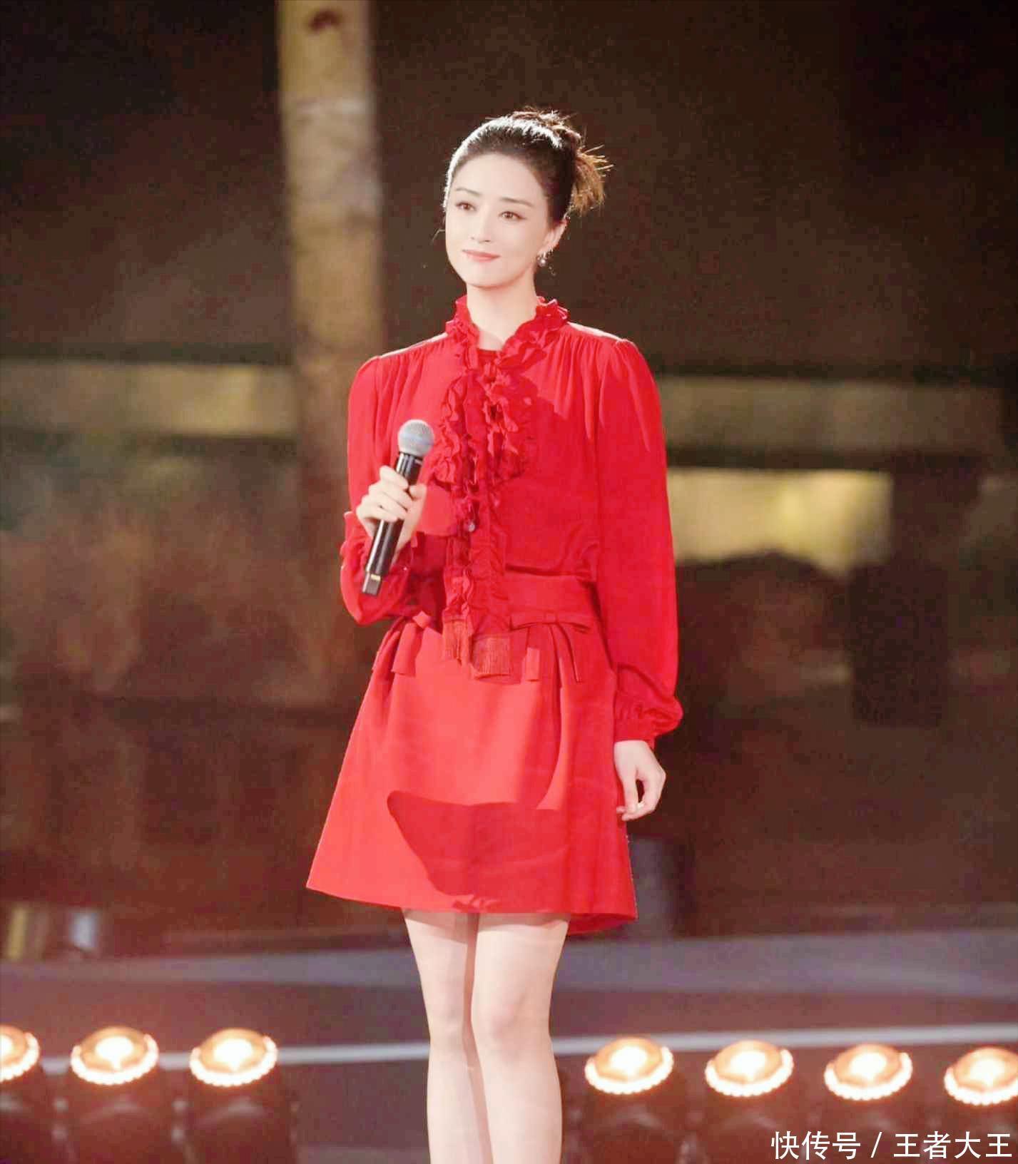 一身正红色的晚礼服搭配上这瘦下来的身材端庄典雅唱起歌来温温柔柔的一下子就俘获了不少人的心啊